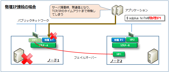 上記のように、物理IPで接続してしまうとサーバ障害時に通信が出来なくなり、