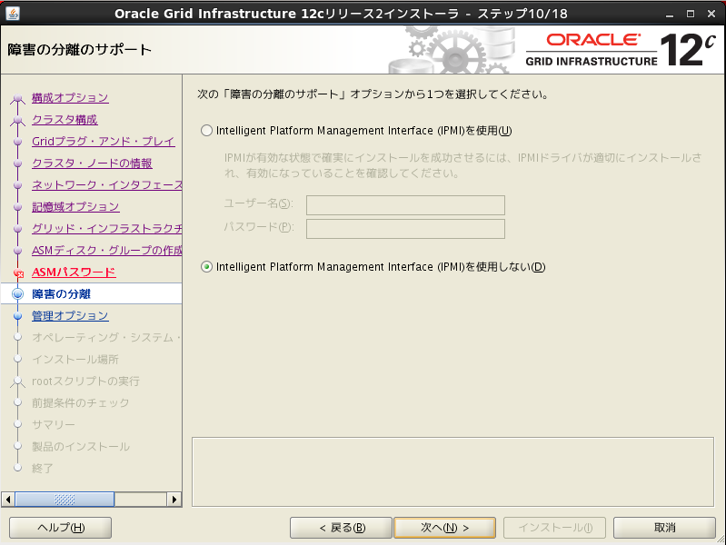 次にGIMR(グリッド・インフラストラクチャ管理リポジトリ)用に使用する