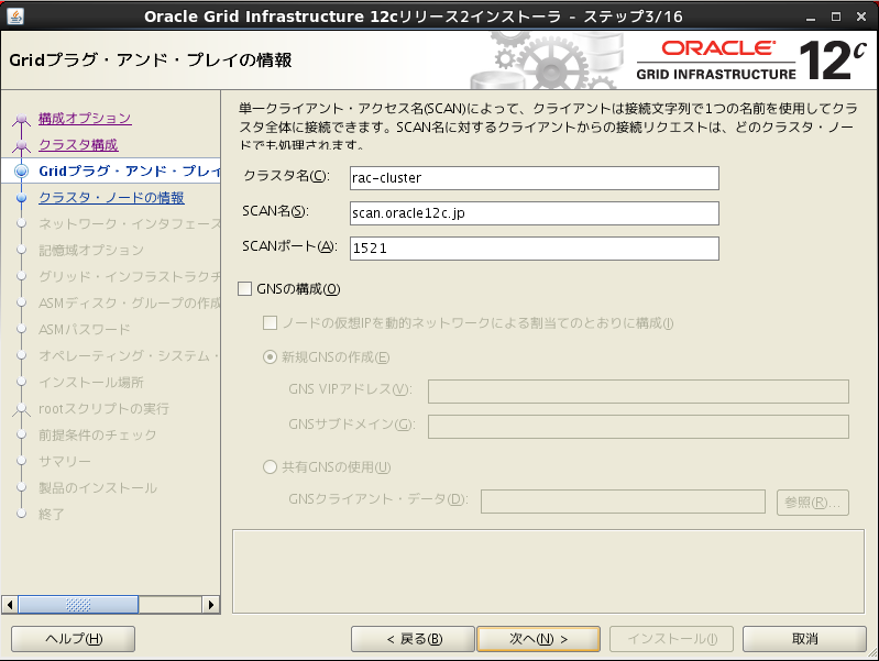 ・Grid Infrastruncture(GI)インストール ←今回はここ
