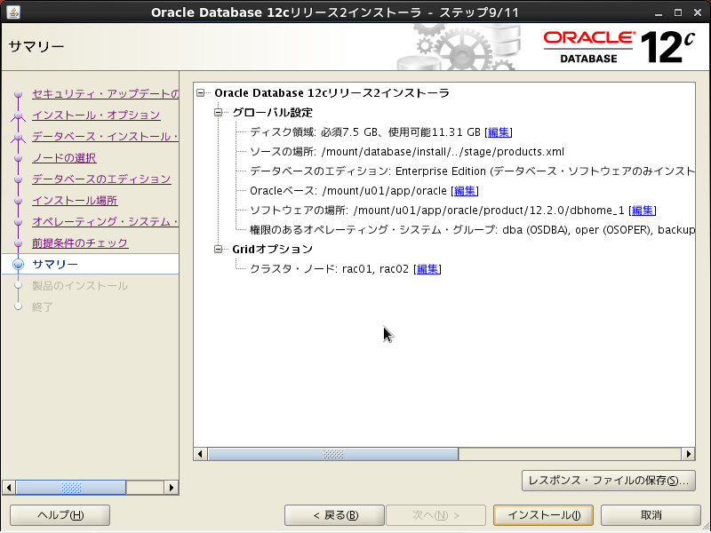 基本的にはシングル構成のOracleインストールと大きく変わりはありません。